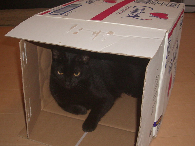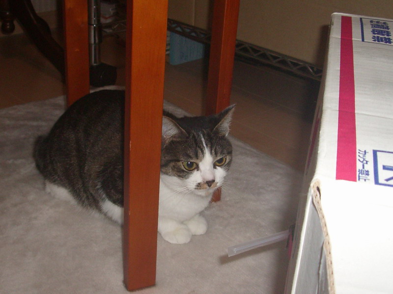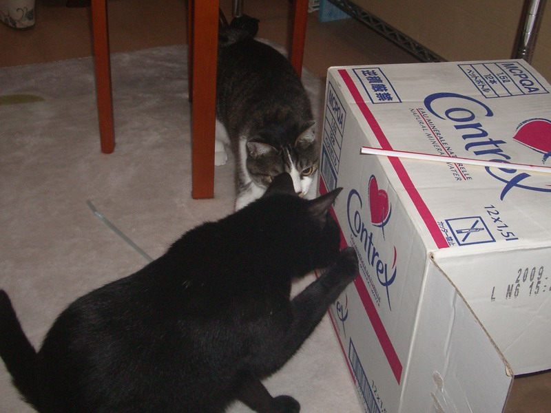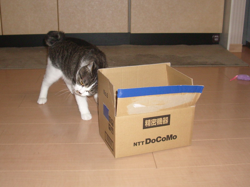 箱の角に激しく頭突き中。