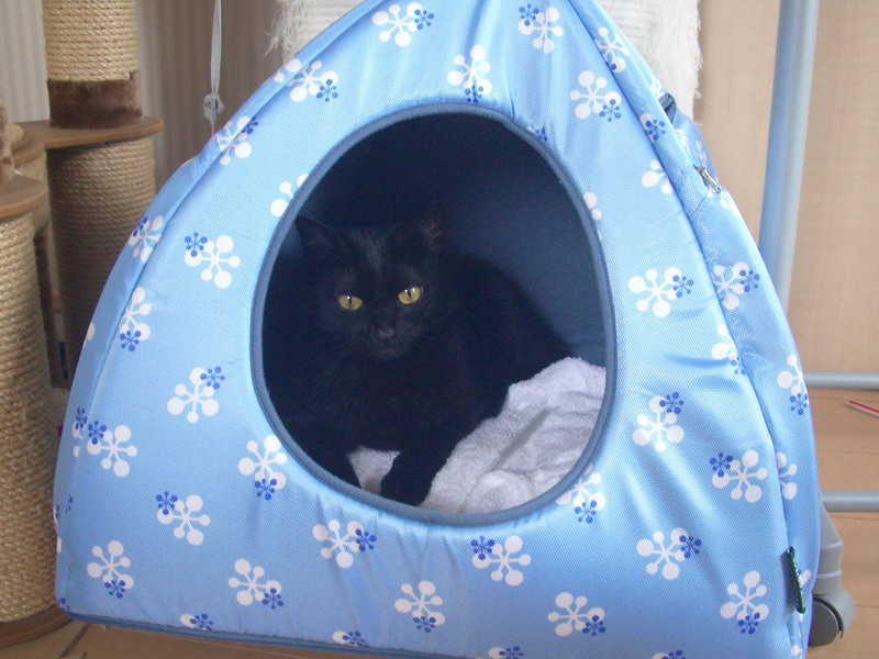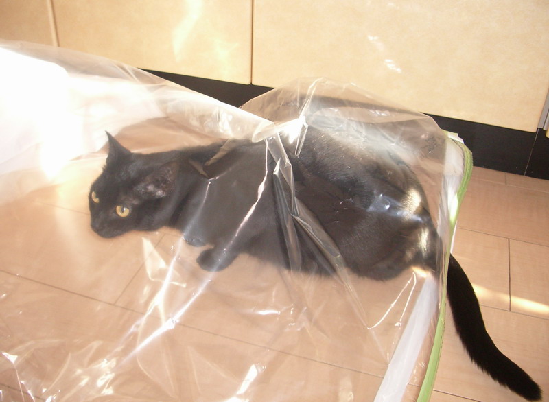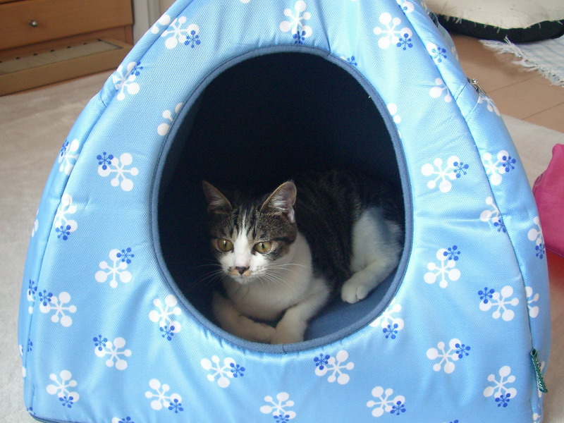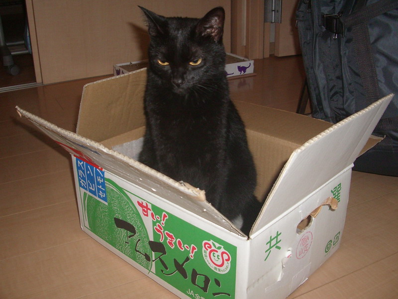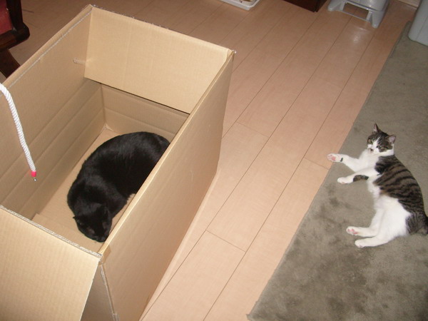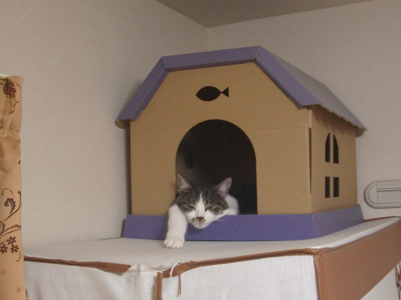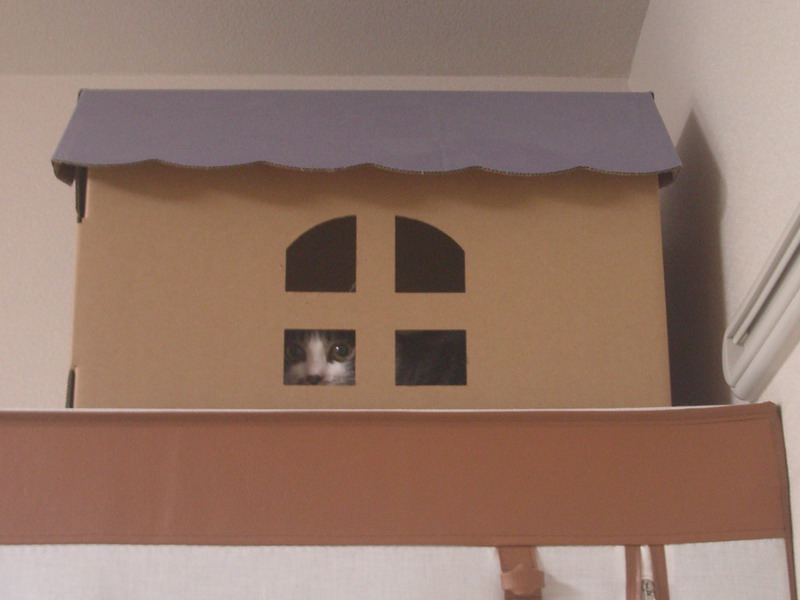 最近は、ワードローブの上のダンボールハウスがお気に入り。