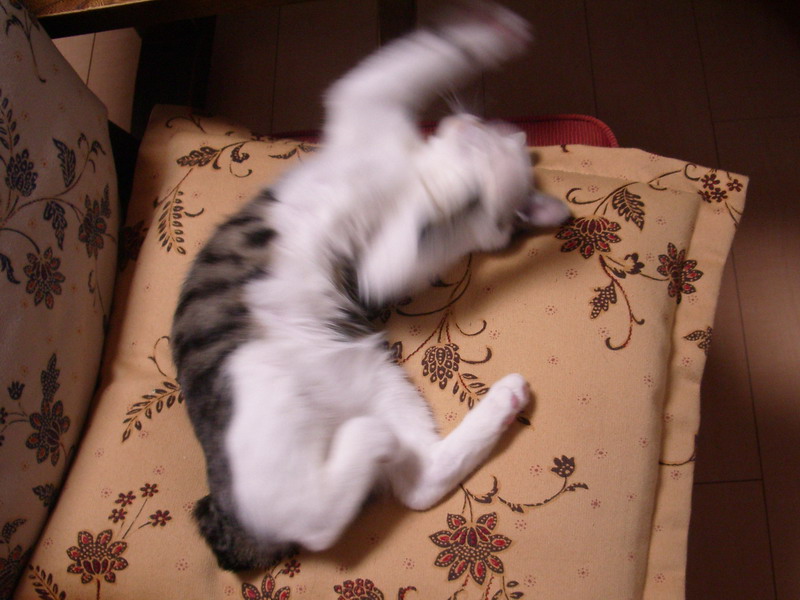 猫じゃらしなどで、遊ばせると、疲れてヘロヘロになって、