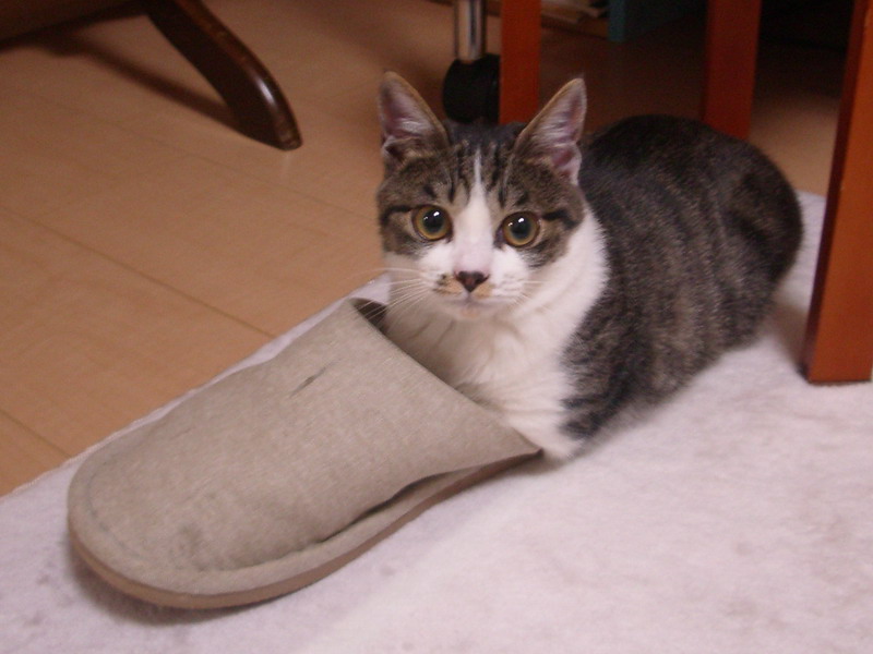 無邪気にスリッパで、遊ぶ「つきみ」