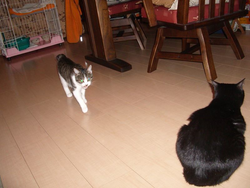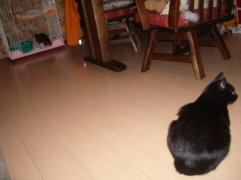 暗がりからじ~っと、「つきみ」を恨めしそうに見ている。