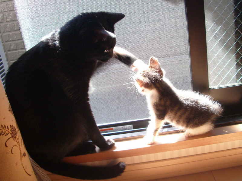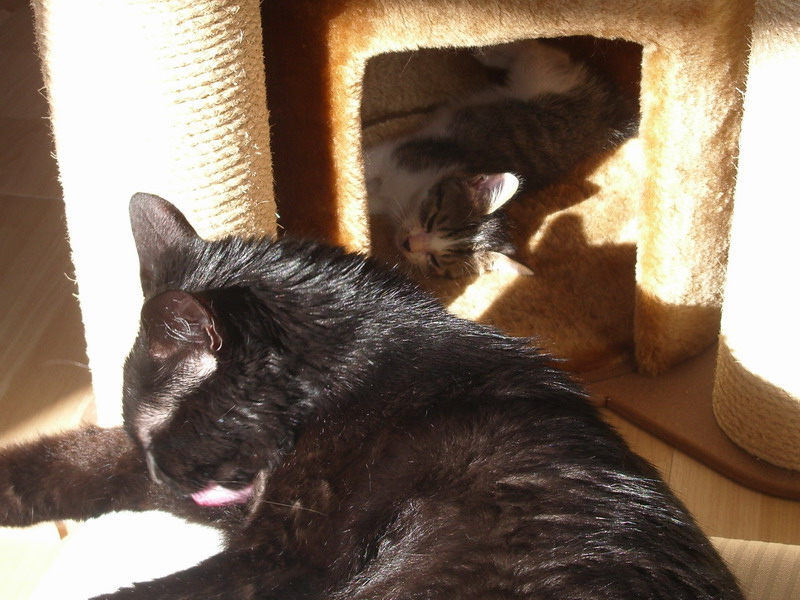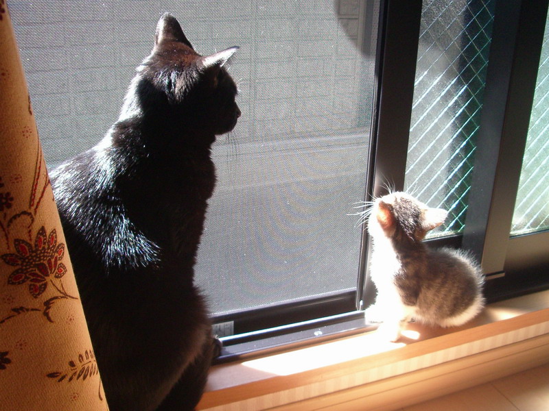 ふふふ、2匹仲良く日向ぼっこ♪と思いきや・・・