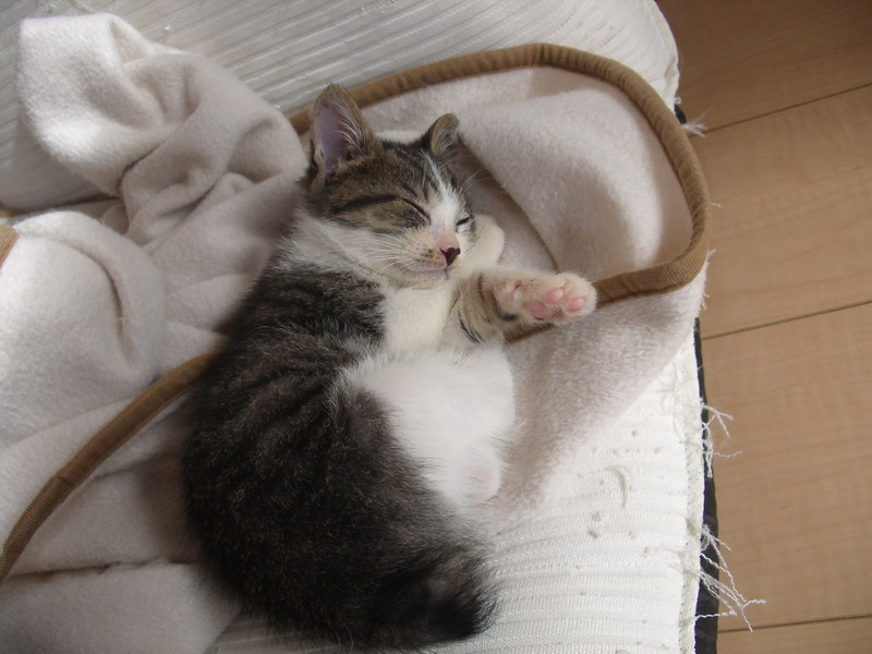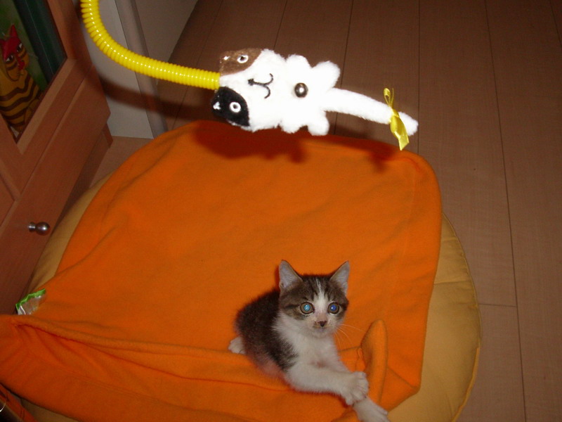 黄色のクッションが気に入ったらしく、そこで就寝。